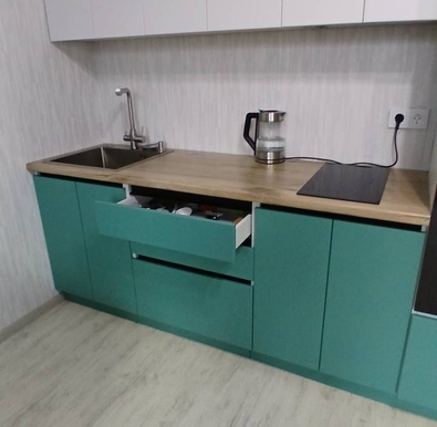Состоит из мойка 1200 мм , шкаф с выдвижными ящиками Блюм 600 мм , модуль с 2 -мя дверками 600 мм и отдельно стоящий ящик 600 мм . В наличии .
